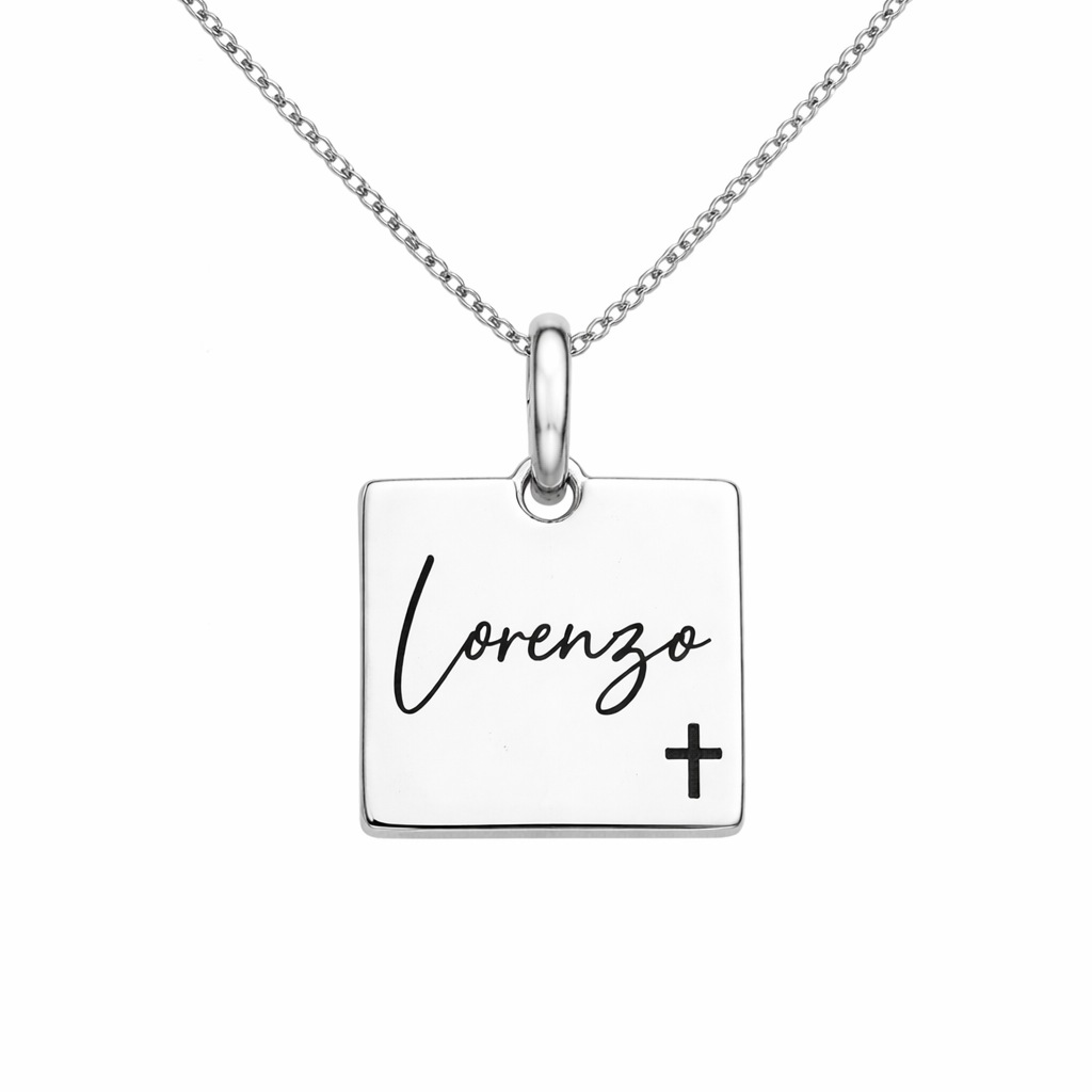 Dije cuadrado de 1,5 cm en plata 925, con grabado personalizado incluido.